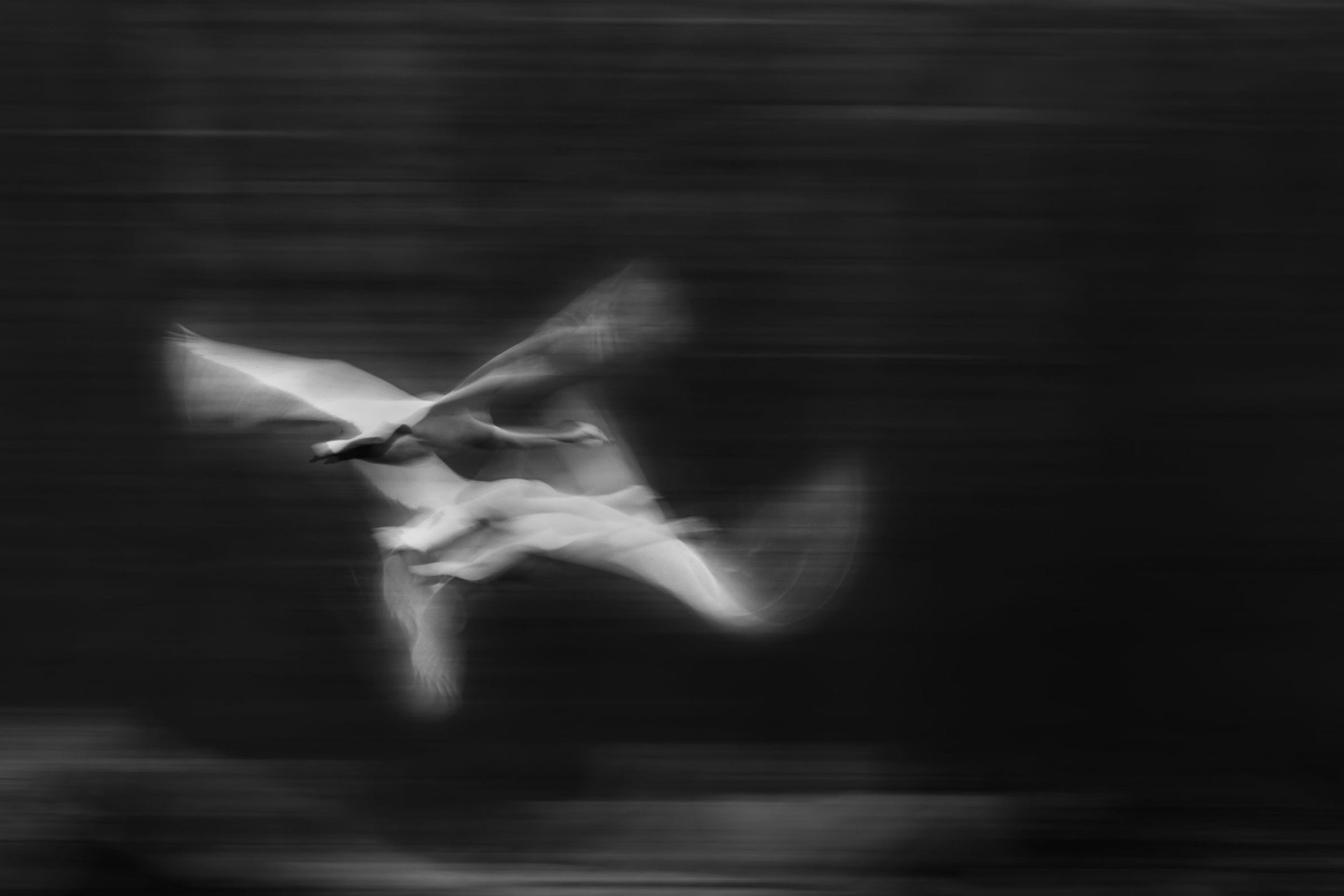 "Догонялки". Лебеди шипуны. Заказник "Лебединый". Озеро Светлое, Алтайский край.